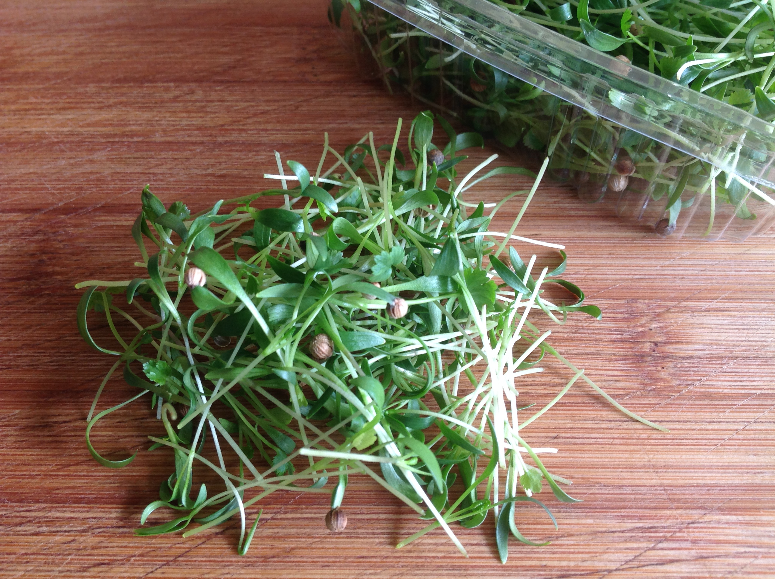 Our featured microherb…and if you like coriander you will love this! Our micro coriander has a more intense flavour than the fully-grown version together with its own special aromatic flavour. It has slender little leaves, some of which have a spherical brown coriander seed attached at the tip. To add to the taste sensation, micro coriander contains folic-acid, riboflavin, niacin, and vitamins C, A, and K and is rich in antioxidants and dietary fibre. It is of course used widely in dishes in Asian cuisine and across the world and can add a particular zing to many a salad and garnish.